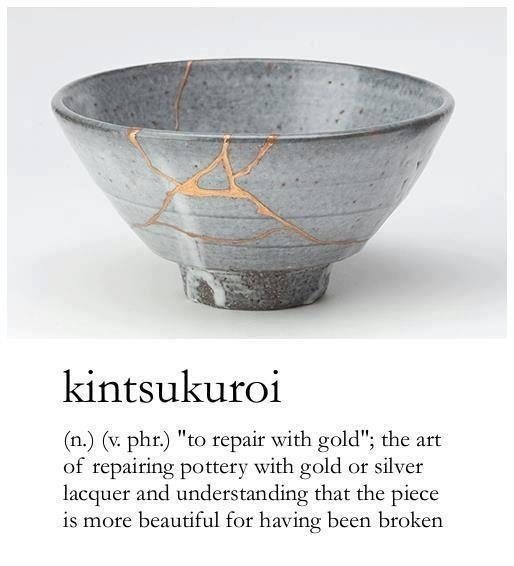 When the Japanese mend broken objects, they aggrandize the damage by filling the cracks with gold. They believe that when something’s suffered damage and has a history it becomes more beautiful. ~ Barbara Bloom