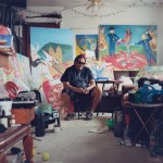 Photo #4: Ishkoten Dougi. Ishkoten is an artist from the Isleta Pueblo Indian Reservation in New Mexico. He is portrayed in his studio, surrounded by his artwork that represents some of the atrocities inflicted on Native Americans.