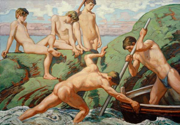 Nackte Schiffer und Knaben am grünen Gestade